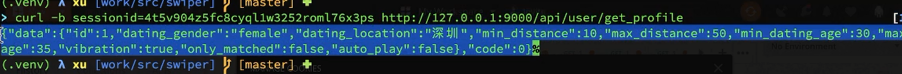 在项目路径下运行,-c代表gunicorn的配置文件(swiper/gconfig.py),swiper.wsgi表示项目的wsgi文件