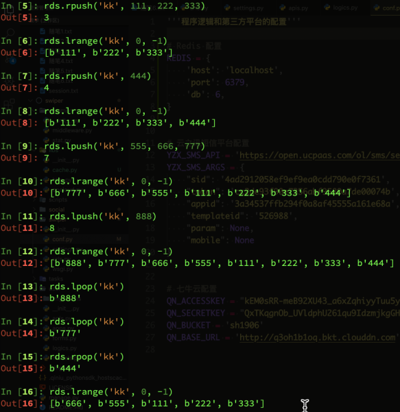 lrem 从指定位置删 lrem(name,count,value) count大于0,从左边删,小于0从右边删,等于0全删