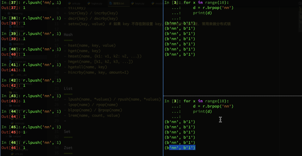 - mget([k1,k2,k3,...]) # 一次取多个key