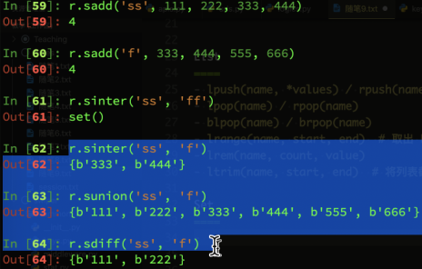 smembers('ss') # 列举集合中的所有的成员
