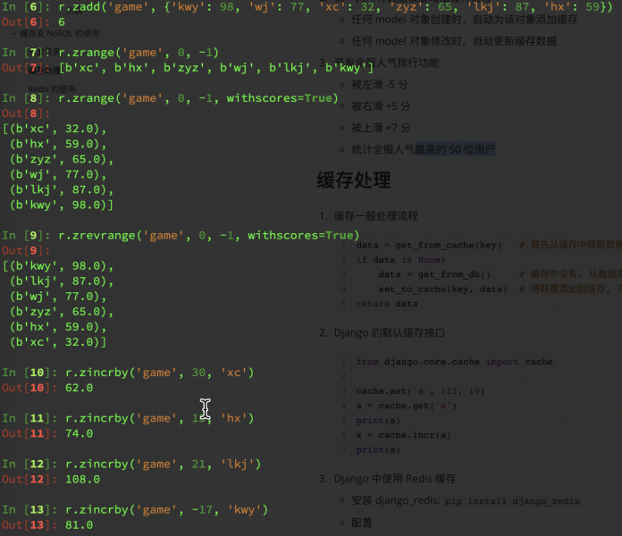 zrevrange(name,0,-1,withsores=True) # 反转排序输出