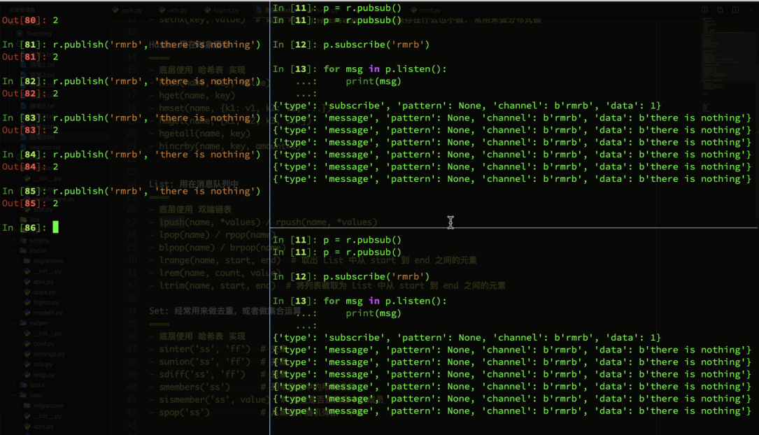 p.listen() # 开始监听频道内容,listen()的结果是一个迭代器,可以无限循环,(循环出来的结果是一个字典)