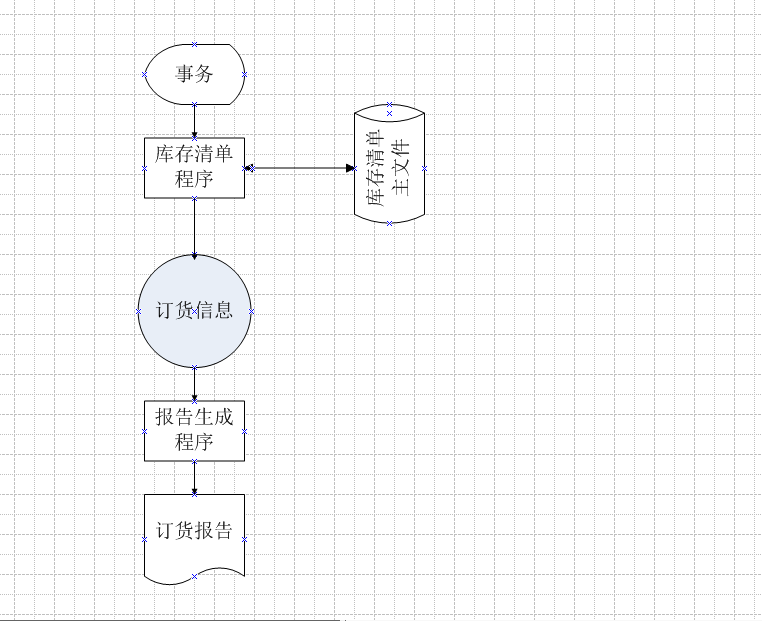 库中的CRT终端输入到计算机中;系统中的库存清单程序对事务进行处理,更新存储在磁盘上的库存清单主文件,并且把必要的订货