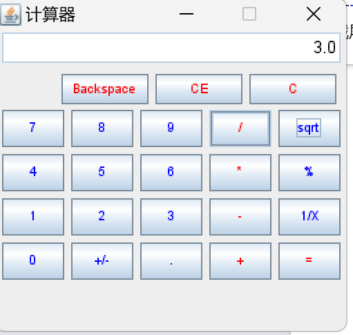 package calculation4; import java.awt.*; import java.awt.event.*; import javax.swing.*; public class calculation4 extends JFrame { private static final long serialVersionUID = 1L; Container c = getContentPane(); //用于固定宽度并支持响应式布局的容器 StringBuilder number1 = new StringBuilder(""); // 储存第1个数字字符串 StringBuilder number2 = new StringBuilder(""); // 储存第2个数字字符串 StringBuilder operator = new StringBuilder(""); // 储存运算符 StringBuilder result = new StringBuilder(""); // 储存运算结果 JTextField numbershow = new JTextField("0"); // 数字显示区域,初始显示为"0" public static void main(String[] args) { // 主方法 //除键(C):在计算中按下此键将清除除存储器内容外的所有数值和计算符号,即可以重新开始输入计算. //清除键(CE):在计算中按下此键将清除除存储器内容外的上一步内容,即可以重新输入按CE前输入的数字(含多位数)或计算符号. calculation4 c1 = new calculation4(); c1.setVisible(true);} public calculation4() { // 计算器构造方法 setTitle("计算器"); setBounds(100, 100, 260, 245); setResizable(false); setLayout(null); setDefaultCloseOperation(JFrame.EXIT_ON_CLOSE); createNumberShow(); // 创建数字显示区域 createClearButtons();// 创建Backspace,CE,C等三个按钮 createButtonArea(); // 创建数字按钮区域 } private void createNumberShow() { // 创建数字显示区域的方法 numbershow.setHorizontalAlignment(JTextField.RIGHT); numbershow.setBounds(5, 0, 245, 22); numbershow.setEnabled(false); numbershow.setDisabledTextColor(Color.BLACK); c.add(numbershow);} private void createClearButtons() { // 创建Backspace,CE,C等三个按钮的方法 JButton[] clearbutton = new JButton[3]; String[] clearbuttontext = { "Backspace", "CE", "C" }; for (int i = 0; i < 3; i++) { clearbutton[i] = new JButton(); clearbutton[i].setText(clearbuttontext[i]); clearbutton[i].setHorizontalAlignment(SwingConstants.CENTER); clearbutton[i].setMargin(new Insets(0, 0, 0, 0)); clearbutton[i].setFont(new java.awt.Font("Arial", 0, 9)); clearbutton[i].setForeground(Color.blue); clearbutton[i].setBounds(48 + i * 68, 30, 63, 22); clearbutton[i].setForeground(Color.red); c.add(clearbutton[i]);} clearbutton[0].addActionListener(new ActionListener() {// 为Backspace按钮添加监听器 public void actionPerformed(ActionEvent e) { if (number1.toString().equals("")) { // 如果未做任何输入 showNumber(numbershow, number1); // 显示number1 } else if (operator.toString().equals("")) { // 如果只输入了number1 number1.deleteCharAt(number1.toString().length() - 1);// 将number1的最后一个字符去掉 showNumber(numbershow, number1); // 显示number1 } else if (number2.toString().equals("")) { // 如果只输入了number1和operator showNumber(numbershow, number1); // 不作任何处理,显示number1 } else { // 如果输入了number1、operator、number2 number2.deleteCharAt(number2.toString().length() - 1);// 将number2的最后一个字符去掉 showNumber(numbershow, number2); // 显示number2 } }}); clearbutton[1].addActionListener(new ActionListener() {// 为CE按钮添加监听器 public void actionPerformed(ActionEvent e) { if (number1.toString().equals("")) { // 如果未做任何输入 showNumber(numbershow, number1); // 显示number1 } else if (operator.toString().equals("")) { // 如果只输入了number1 number1.setLength(0); // 清除number1 showNumber(numbershow, number1); // 显示number1 } else if (number2.toString().equals("")) { // 如果输入了number1和operator showNumber(numbershow, number2); // 不作任何处理,显示number2 } else { // 如果输入了number1、operator、number2 number2.setLength(0); // 清除number2 showNumber(numbershow, number2); // 显示number2 } } }); clearbutton[2].addActionListener(new ActionListener() {// 为C按钮添加监听器 public void actionPerformed(ActionEvent e) { // 将所有储存清零 number1.setLength(0); number2.setLength(0); operator.setLength(0); numbershow.setText("0."); result.setLength(0); } });} private void createButtonArea() { // 创建数字按钮区域的方法 JPanel ButtonArea = new JPanel(); ButtonArea.setBounds(5, 55, 245, 125); ButtonArea.setLayout(new GridLayout(4, 5, 5, 5)); c.add(ButtonArea); JButton[] numberbutton = new JButton[20]; String[] numberbuttontext = { "7", "8", "9", "/", "sqrt", "4", "5", "6","*", "%", "1", "2", "3", "-", "1/X", "0", "+/-", ".", "+", "=" }; for (int i = 0; i <= 19; i++) { // 使用循环为这20个按钮添加标识 numberbutton[i] = new JButton(numberbuttontext[i]); ButtonArea.add(numberbutton[i]); if (i % 5 == 3 || i == 19) {// 操作符按钮设置为红色 numberbutton[i].setHorizontalAlignment(SwingConstants.CENTER);//文本居中 numberbutton[i].setMargin(new Insets(0, 0, 0, 0));//构件在显示区的上,左,下,右的空白区0 numberbutton[i].setFont(new java.awt.Font("Arial", 0, 9)); //name表示的是字体的样式,常用的字体有Times New Roman、Symbol、宋体、楷体等。 //style表示的是字体的风格,默认是正常Font.PLAIN,有加粗Font.BLOD,有斜体Font.INTALIC //可以加粗+斜体Font.BLOD + Font.INTALIC numberbutton[i].setForeground(Color.red); } else { // 其它设置为蓝色 numberbutton[i].setHorizontalAlignment(SwingConstants.CENTER); numberbutton[i].setMargin(new Insets(0, 0, 0, 0)); numberbutton[i].setFont(new java.awt.Font("Arial", 0, 9)); numberbutton[i].setForeground(Color.blue); }} int[] numbers = { 15, 10, 11, 12, 5, 6, 7, 0, 1, 2 };// 该数组分别代表0-9等数字在numberbuttontext数组中序号 for (int i = 0; i <= 9; i++) { // 使用循环为这0-9这十个数字按钮添加监听器 final String str = String.valueOf(i); //封装,将括号里面这个 i 的值转换成一个‘String’类型的值 numberbutton[numbers[i]].addActionListener(new ActionListener() {// 为0-9按钮添加监听器 public void actionPerformed(ActionEvent e) { if (operator.toString().equals("")) {