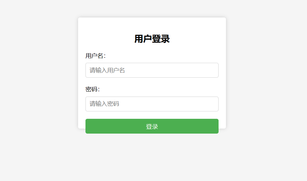 <!DOCTYPE html> <html> <head> <meta charset="UTF-8"> <title>登录</title> <style type="text/css"> body { background-color: #f5f5f5; } .container { margin: 100px auto; width: 400px; height: 300px; background-color: #fff; border-radius: 5px; box-shadow: 0 0 10px #ccc; padding: 20px; box-sizing: border-box; } h2 { text-align: center; font-size: 24px; margin-bottom: 20px; } label { display: block; font-size: 16px; margin-bottom: 10px; } input[type="text"], input[type="password"] { width: 100%; height: 40px; border: 1px solid #ccc; border-radius: 5px; padding: 0 10px; box-sizing: border-box; margin-bottom: 20px; font-size: 16px; } input[type="submit"] { width: 100%; height: 40px; background-color: #4CAF50; color: #fff; border: none; border-radius: 5px; font-size: 16px; cursor: pointer; } input[type="submit"]:hover { background-color: #3e8e41; } </style> </head> <body> <div class="container"> <h2>用户登录</h2> <form action="#" method="post"> <label for="username">用户名:</label> <input type="text" id="username" name="username" placeholder="请输入用户名"> <label for="password">密码:</label> <input type="password" id="password" name="password" placeholder="请输入密码"> <input type="submit" value="登录"> </form> </div> </body> </html>