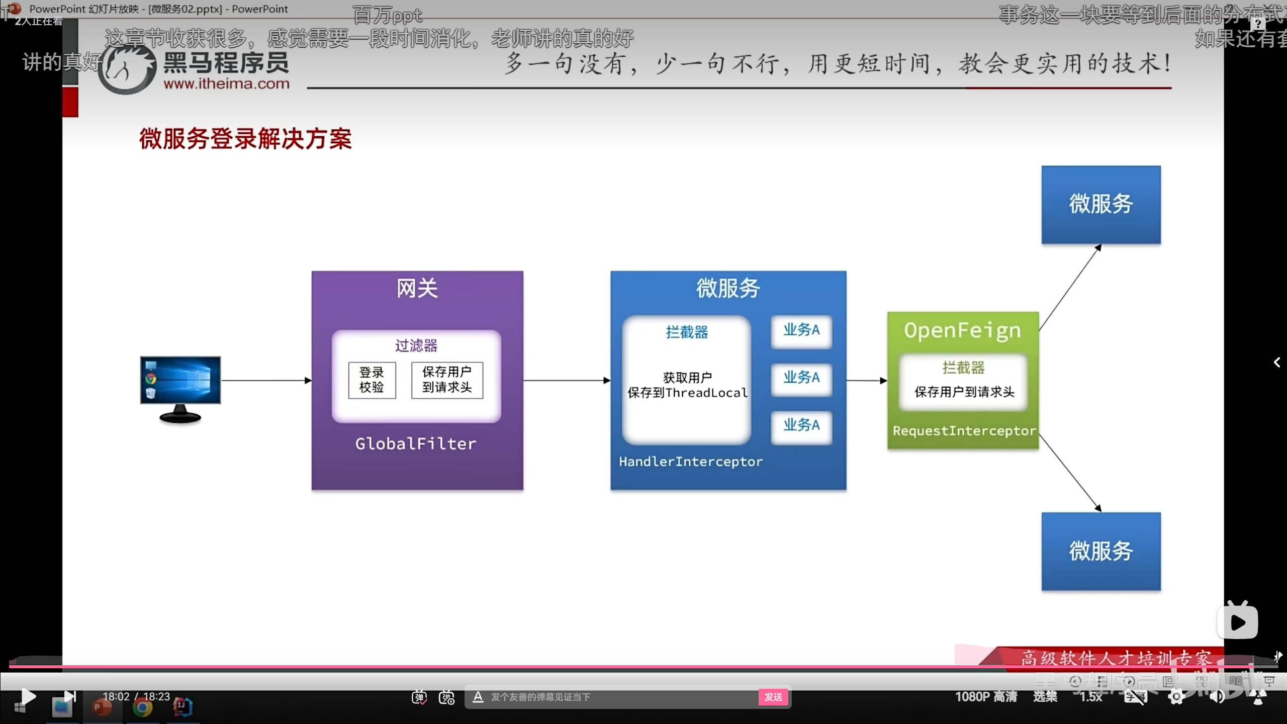 微服务内部会写一个局域部分的拦截器 来获取用户的userId 即在上一步请求头里面 为HandlerInterceptor