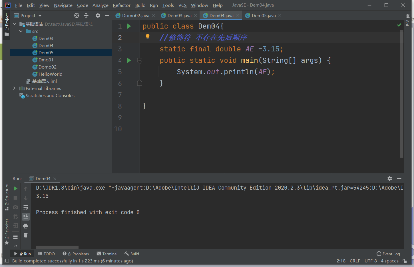 常量(Constant):初始化(initialize)后不能再改变值!不会变动的值