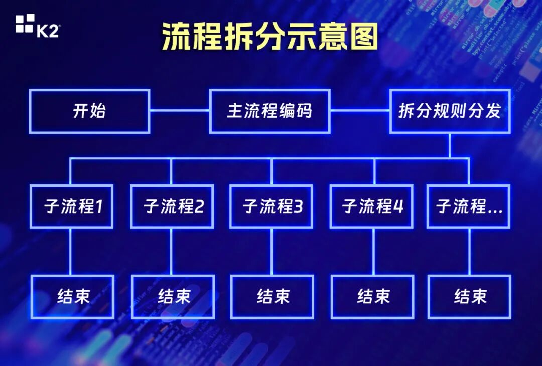 流程拆分顾名思义,是将同一条流程按不同的板块拆分成多条流程的技术,通过配置流程拆分规则,可将主流程按拆分规则分导向至不同的流程上面。