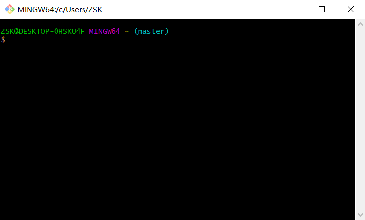 在Windows上安装Git,可以从Git官网上直接下载安装程序,然后按默认选项安装即可。安装完成后,在开始菜单中找到"Git"->"Git Bash",点击后会弹出如下窗口,说明Git安装成功。