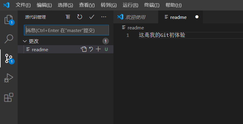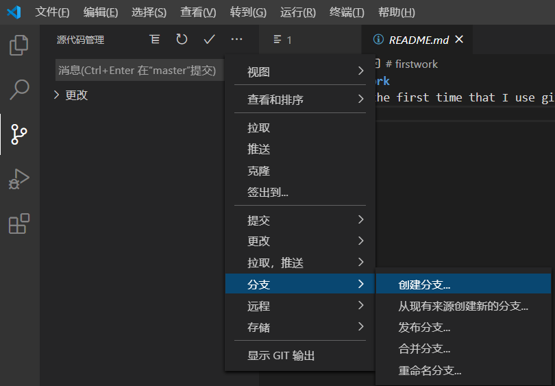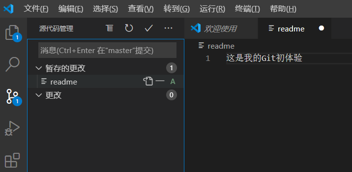 接下来我们可以在myfirstwork目录下编写一个文件,点击左侧的"+",暂存更改