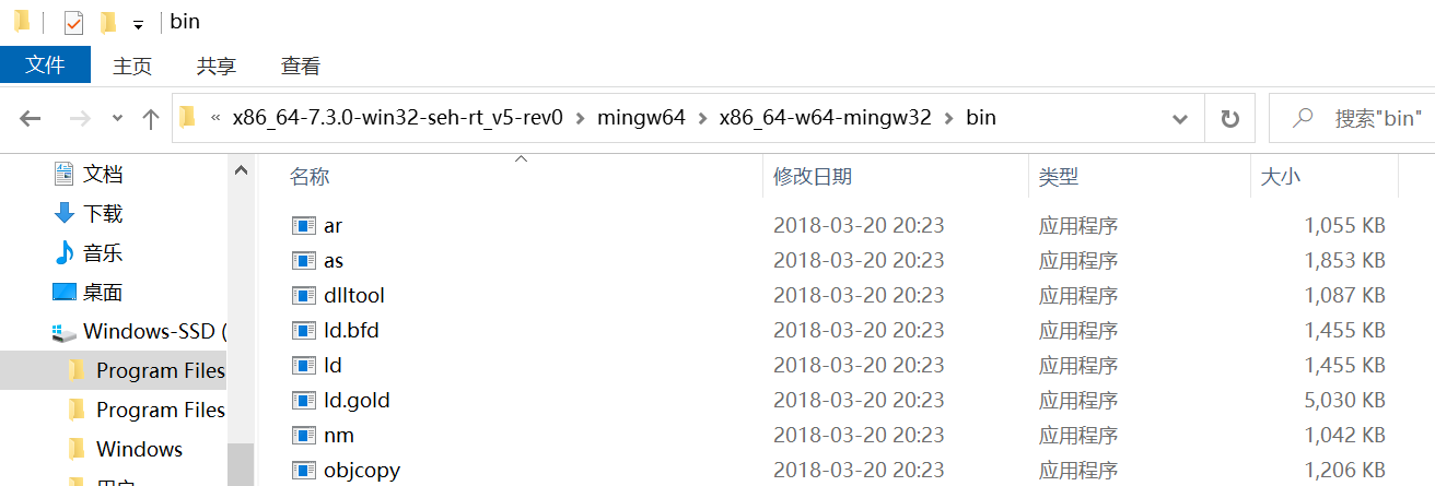 安装完成后添加环境变量:打开mingw-w64文件夹,一步步找到bin文件夹,复制路径。