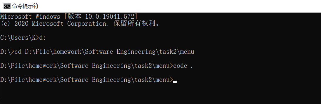 在你需要的地方建立一个新文件夹menu,在该目录下使用命令行输入“code .” 就会在VSCode中打开这个文件夹。