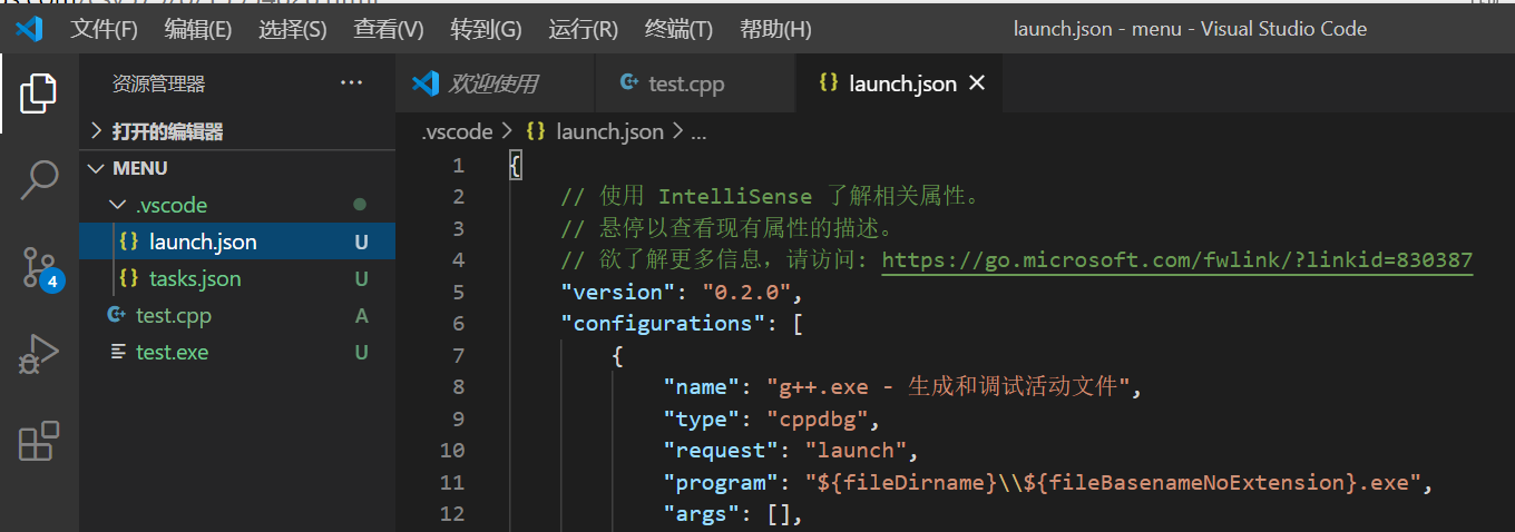 然后会生成一个包含launch.json和task.json的.vscode文件夹,如下: