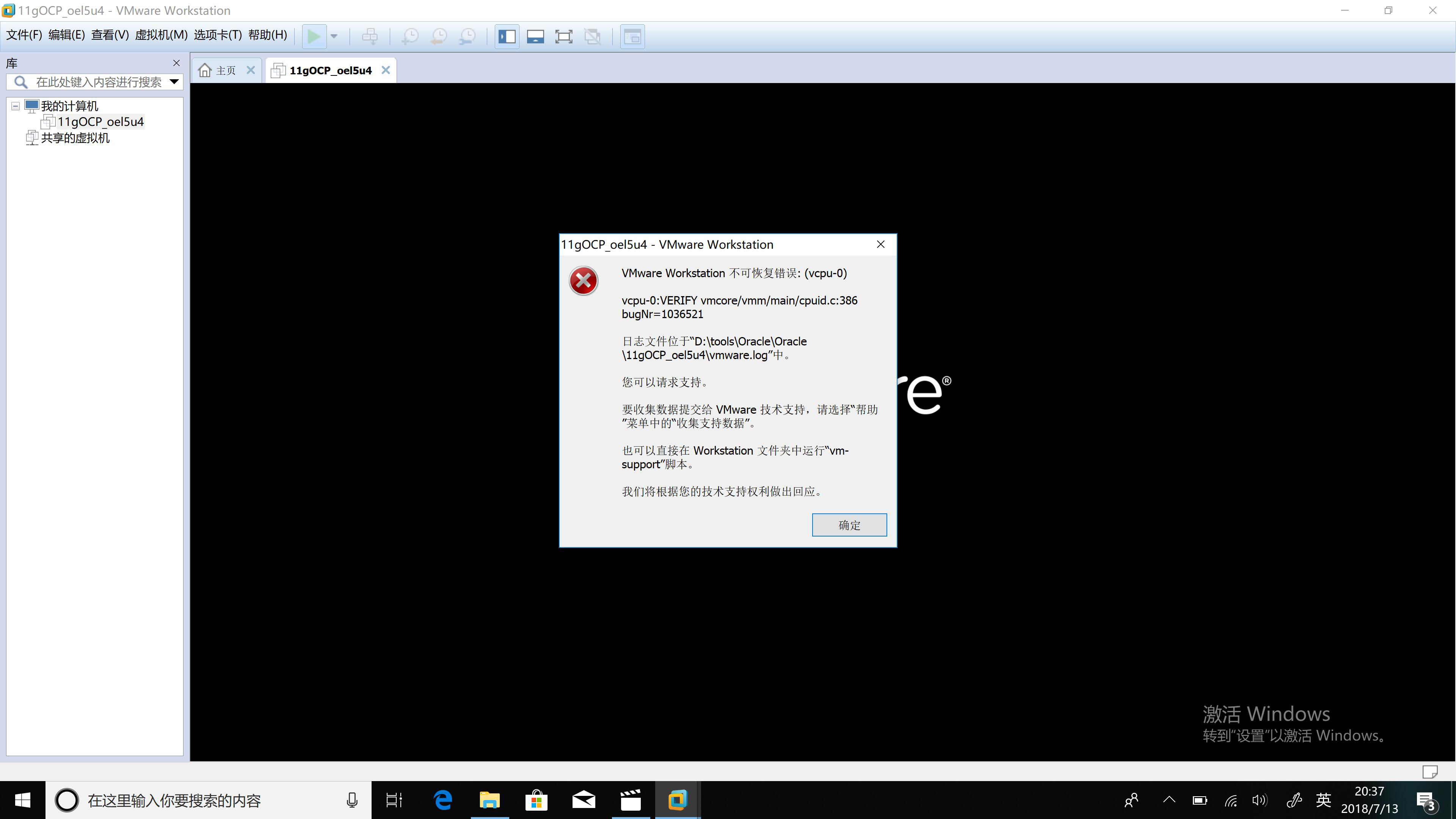 VMware Workstation 不可恢复错误:(vcpu-0)....