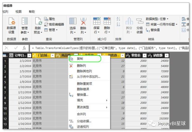 Powerquery编辑器中我们进行处理的每一步都是生成一个表格,如果需要中间的过程表,就点击该步骤,然后选中列,右键复制即可。