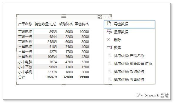 当然,这里的可视化对象不仅限于表格,其他图表都可以用这种方式将其数据导出来。