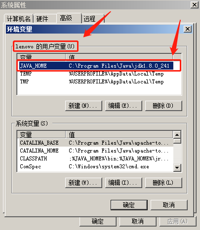 变量值 Java jdk安装路径C:\Program Files\Java\jdk1.8.0_241