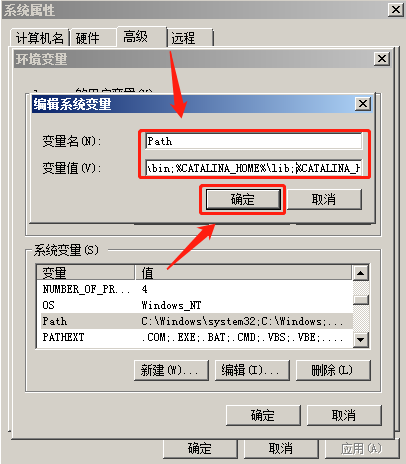 window2008R2 path变量为一行字符,不要删除(误删之后不要点确定,点击取消即可)