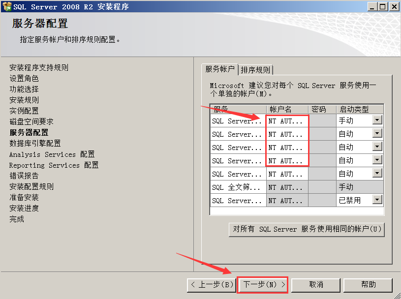 12.服务器配置(服务账户名全选第一个,密码不选)