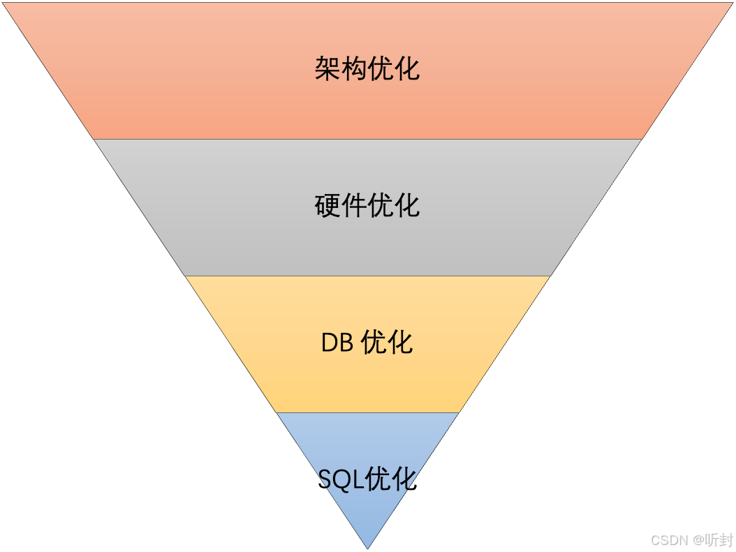 数据库优化可以从架构优化,硬件优化,DB优化,SQL优化四个维度入手 。