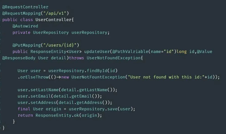 @PutMapping注解用于处理HTTP PUT请求,并将请求映射到具体的处理方法中,@PutMapping是一个组合注解,相当于是@RequestMapping(method=HttpMethod.PUT)的快捷方式。下面是使用@PutMapping的一个示例: