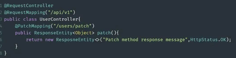@PatchMapping注解用于处理HTTP PATCH请求,并将请求映射到对应的处理方法中。@PatchMapping相当于是@RequestMapping(method=HttpMethod.PATCH)的快捷方式。下面是一个简单的示例: