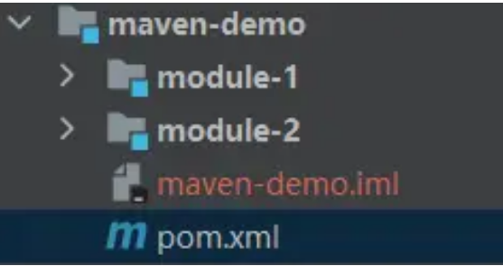 如下在 maven-demo 中又包含了 module-1 和 module-2 两个工程。