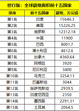 世界银行2017年数据,中国以全球第四的耕地面积,产出全球最高的粮食产量,达6.179亿吨,美国排第二,4.4亿吨,印度第三,3.316亿吨,印度粮食总产量只有中国的一半。