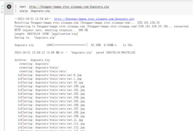 2.下载数据(训练集包含1800张图(猫的图片900张,狗的图片900张),测试集包含2000张图。)