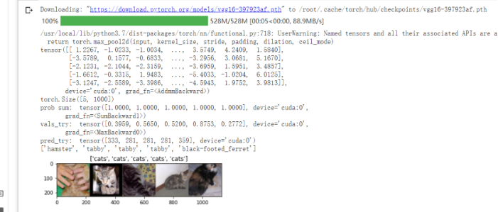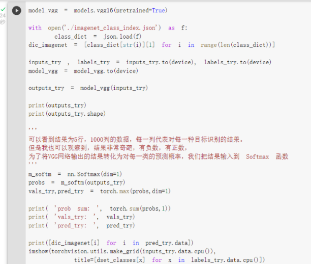 6.对输入的5个图片利用VGG模型进行预测,同时,使用softmax对结果进行处理