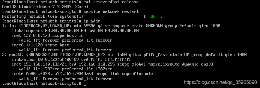 以上修改过ifcfg-ens33文件,都需要重启网卡:service network restart