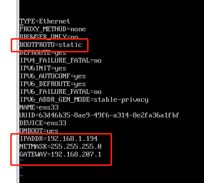 vi /etc/sysconfig/network-scripts/ifcfg-ens33