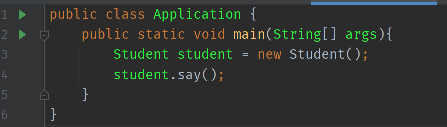 编写测试类 Application,在该类中创建 Student 类的对象,调用say() 方法。代码: