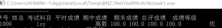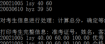 printf("\n打印考生完整信息: 准考证号,姓名,客观题得分,操作题得分,总分,等级\n");