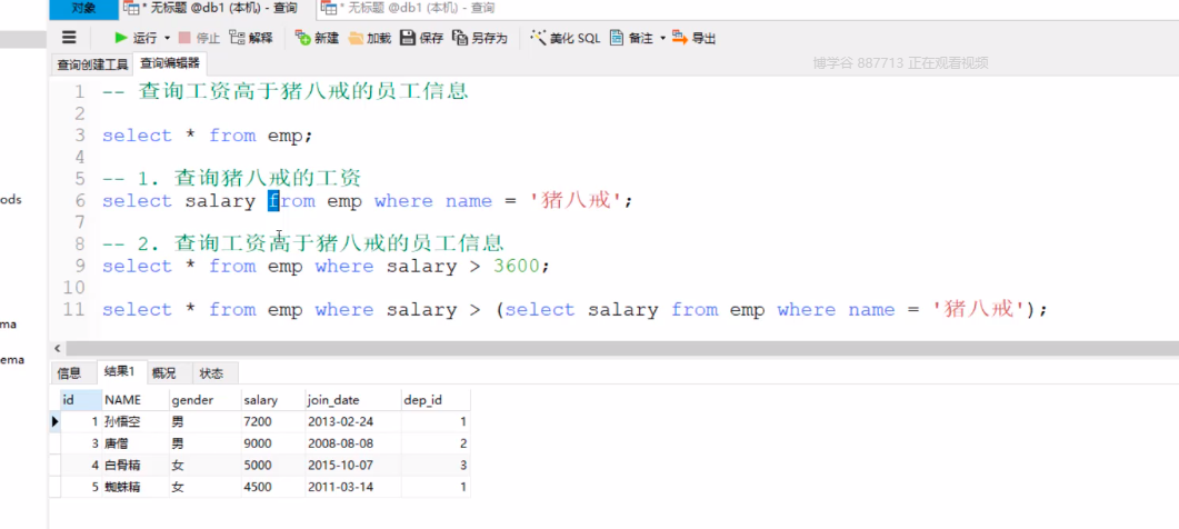 多表查询-子查询3种方式