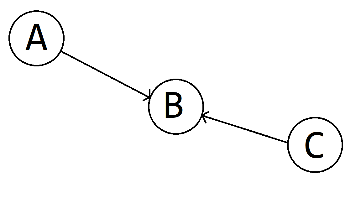 在这个例子中,很明显如果每一条边都是无向的,那么这个图是连通的。但是,由于它是有向边,所以 \(A\) 没有到达 \(C\) 的路径,\(C\) 也没有到达 \(A\) 的路径,图是非半连通的。