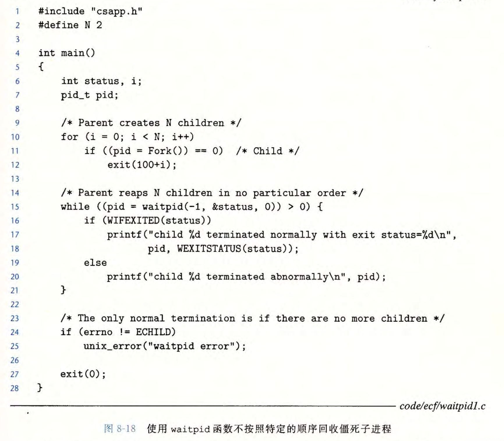 以下是waitpid的一个例子