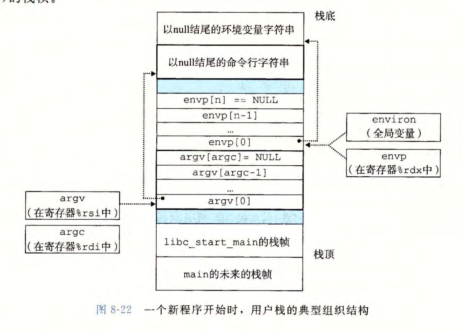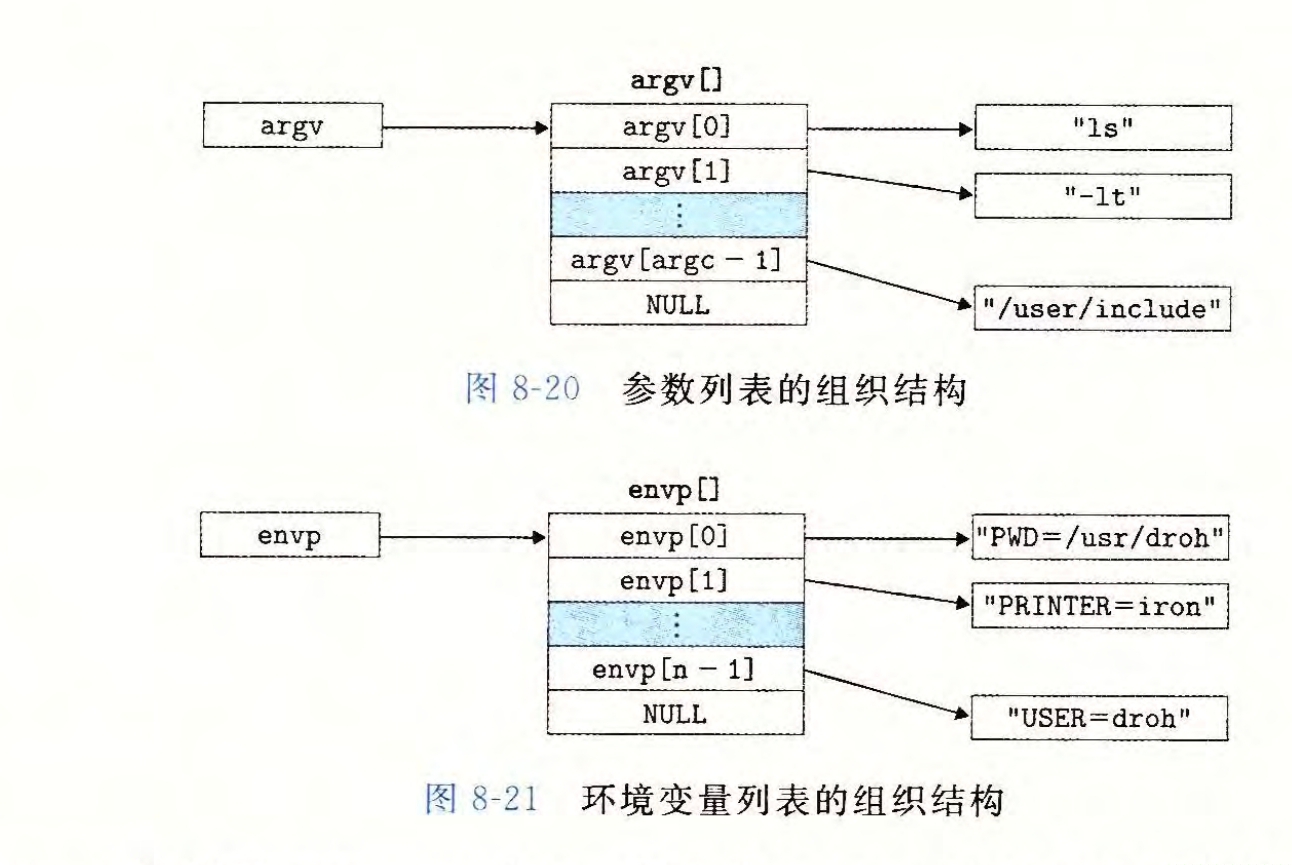 execve调用启动代码,将控制和相关参数传递给filename的main函数