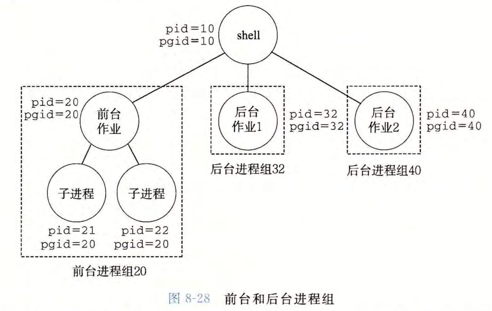 同时在shell中,也可以为了对一行命令行求值创建进程,该进程被称为任务,shell为每个任务创建一个新的进程组