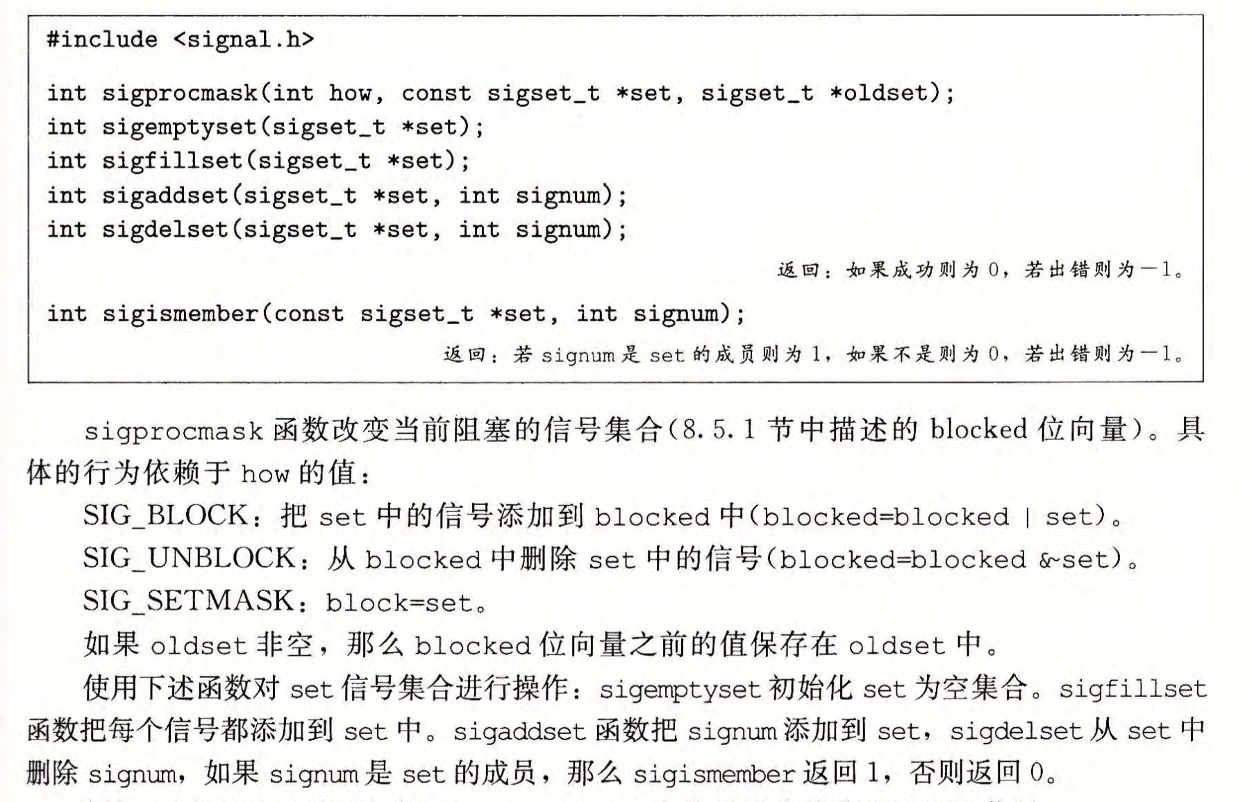 显示阻塞机制:使用 sigprocmask对blocked位进行修改