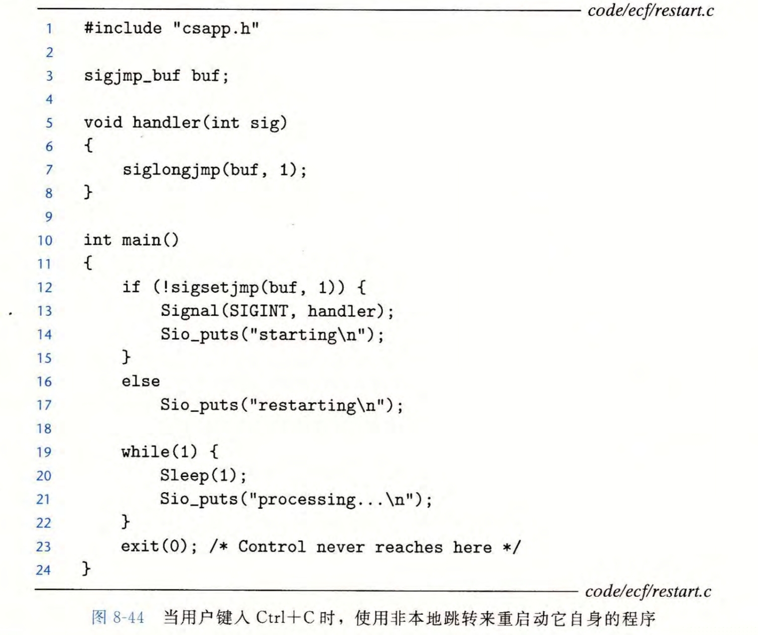 通过sigsetjmp,我们得以保存pending和blocked位,使得跳转后这两个位向量等于设置时的位向量