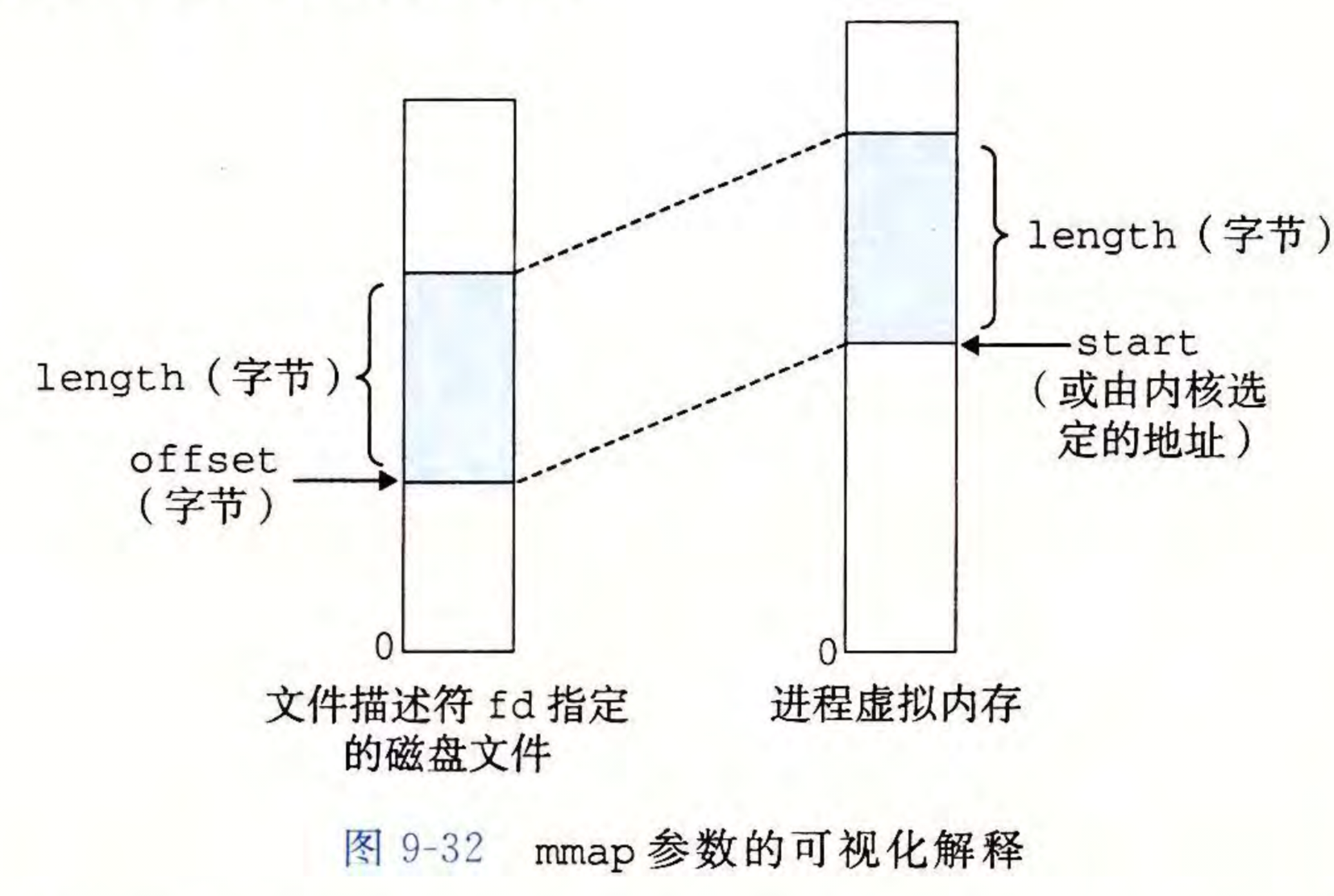 要想删除虚拟空间的一部分,可以使用\(munmap(start, length)\)对start为起点的length字节虚拟空间进行删除