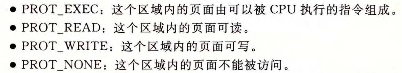 对于剩余的参数prot,该参数指定了虚拟内存的权限访问位,可以为以下几种