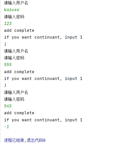 但是在第二次循环后,用户名的输入被自动跳过了,从键盘输入不了任何数。
