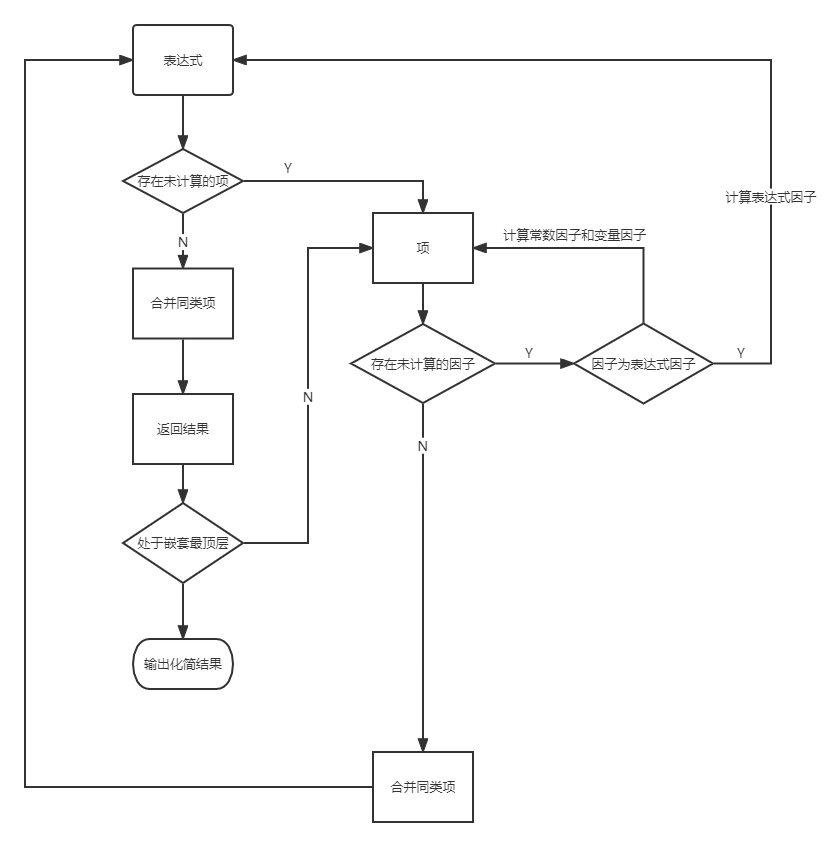 而对于计算来说,一般性的思路为:对表达式各项进行计算并合并,再对表达式进行合并同类项,具体流程如下图所示
