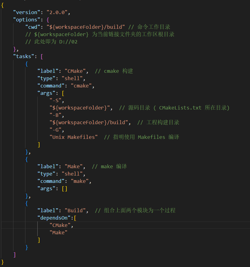 "cwd": "${workspaceFolder}/build" // 命令工作目录