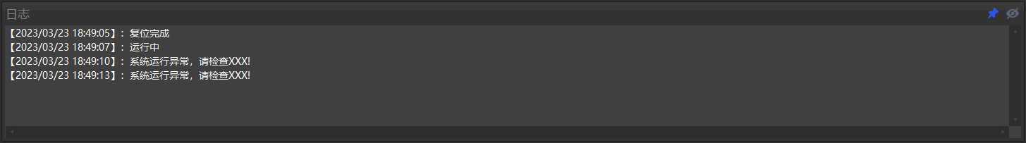 很多情况下,软件需要将运行过程中产生的必要信息(日志或报警信息)实时输出,以便用户及时关注到系统健康状态,如下图。