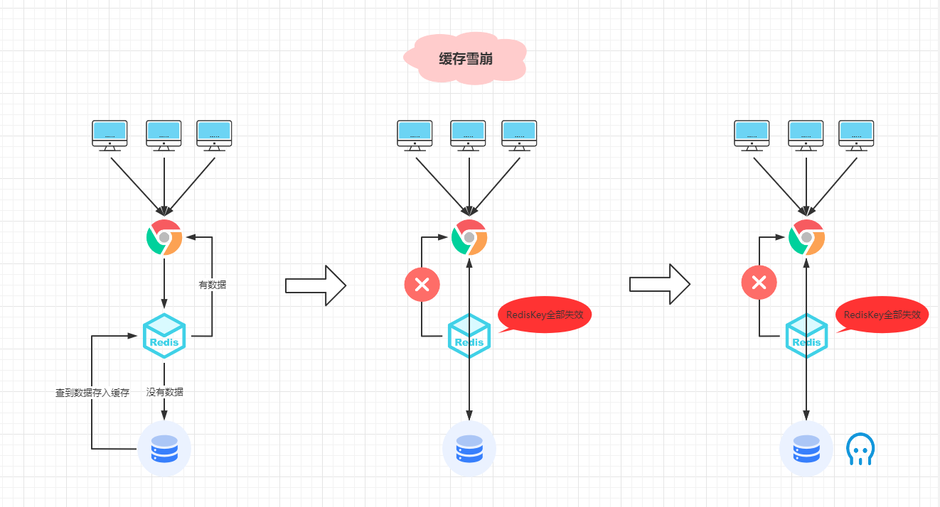 右边:单个访问数据库可以顶得住,但是这是茅台抢购,每秒的访问数亿计,QPS那么大,数据库服务再这一瞬间无法支撑那么大的请求,瞬间就把数据库击垮了,然后宕机了。
