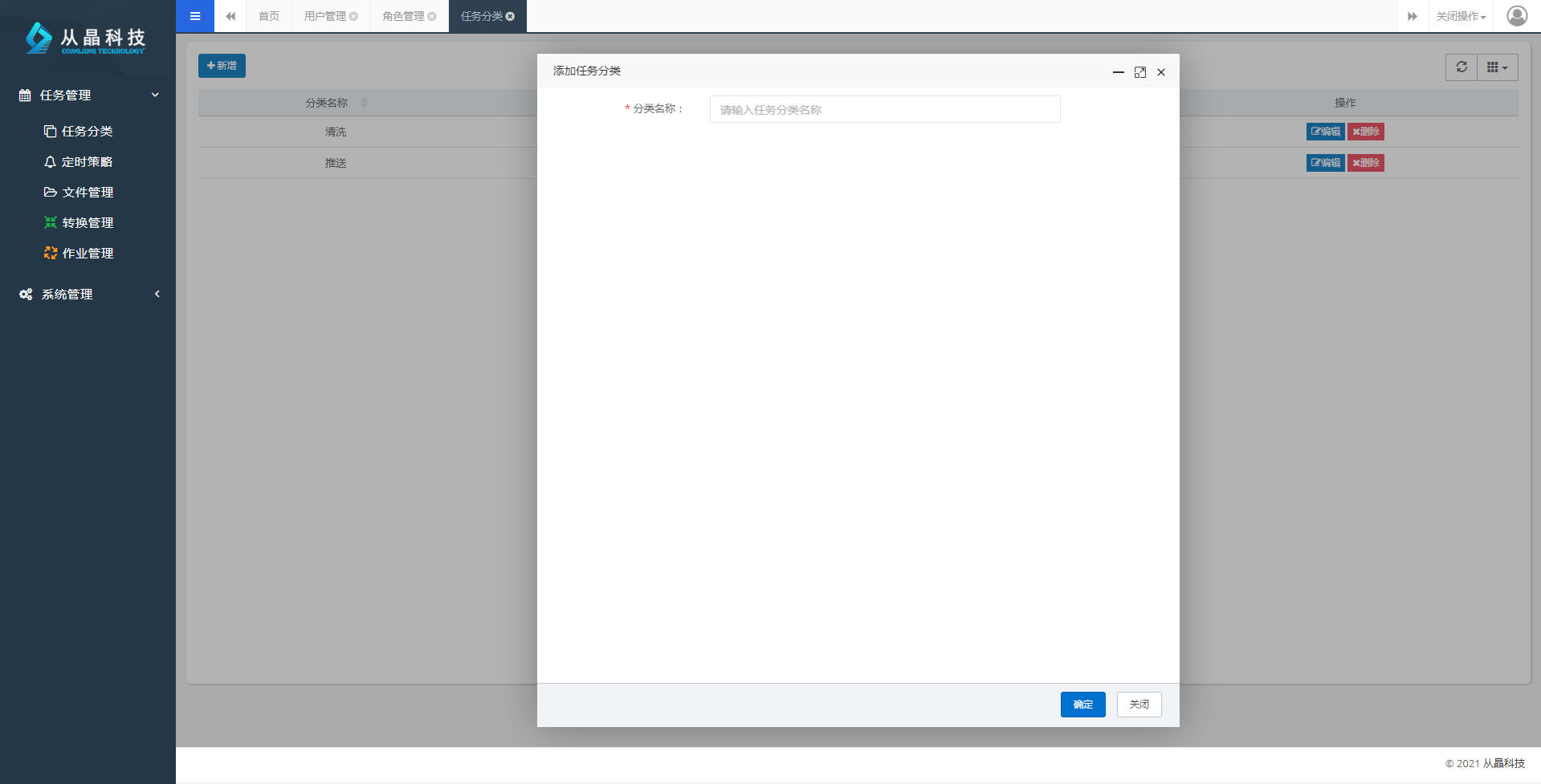 新增任务分类:点击后可以新增加一条任务分类,如下图: