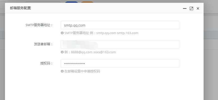 如:SMTP服务器选择QQ邮箱,发送者邮箱请填写:xxxx@qq.com